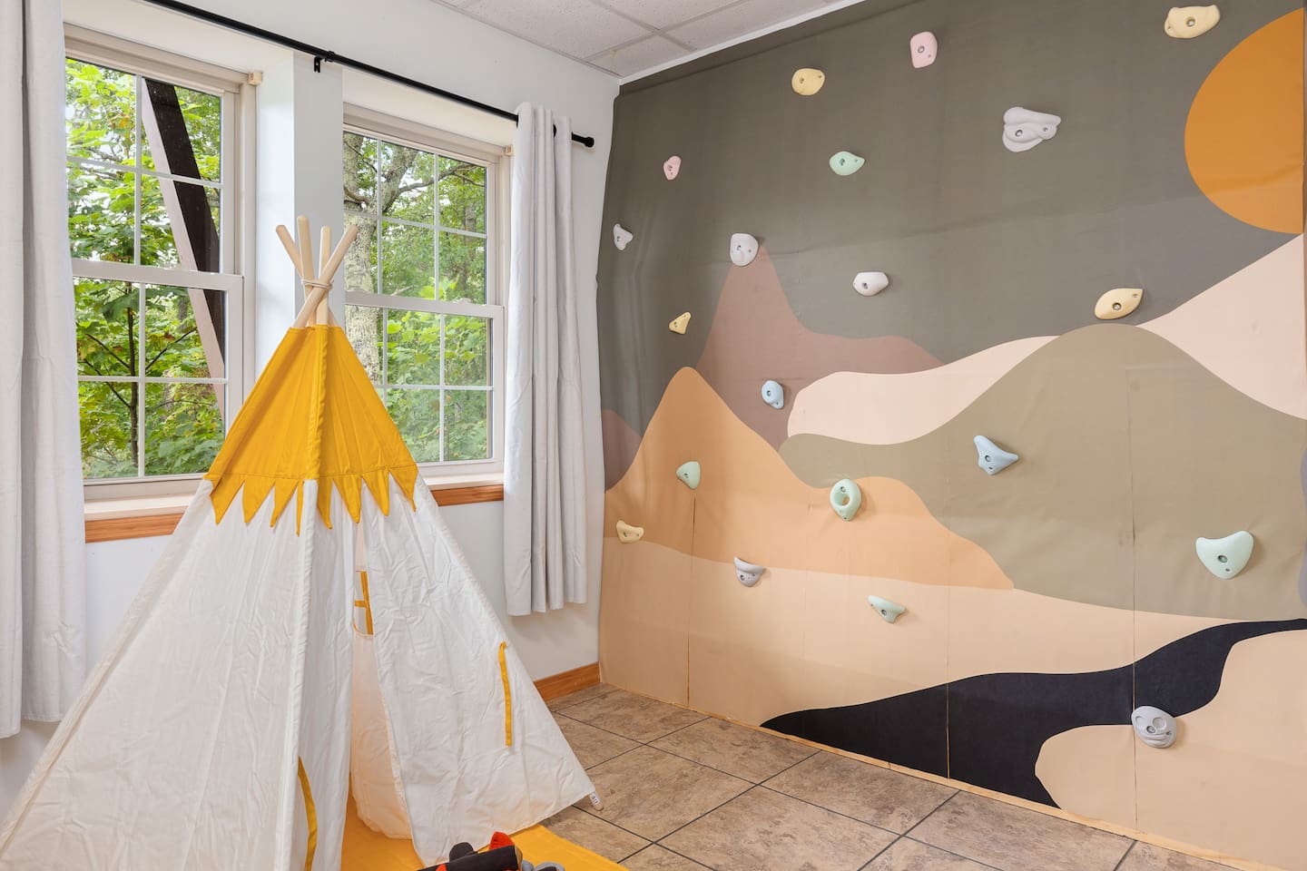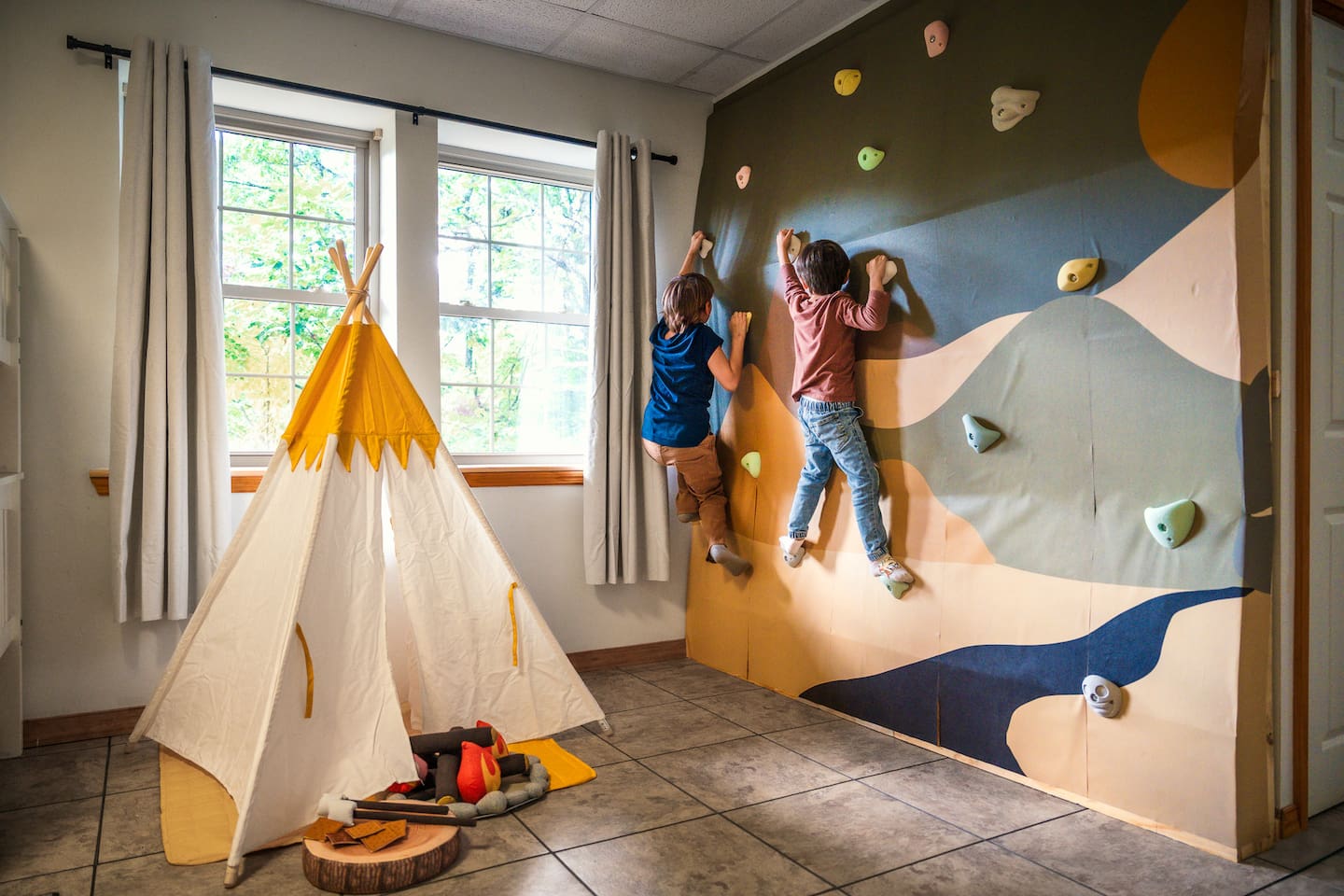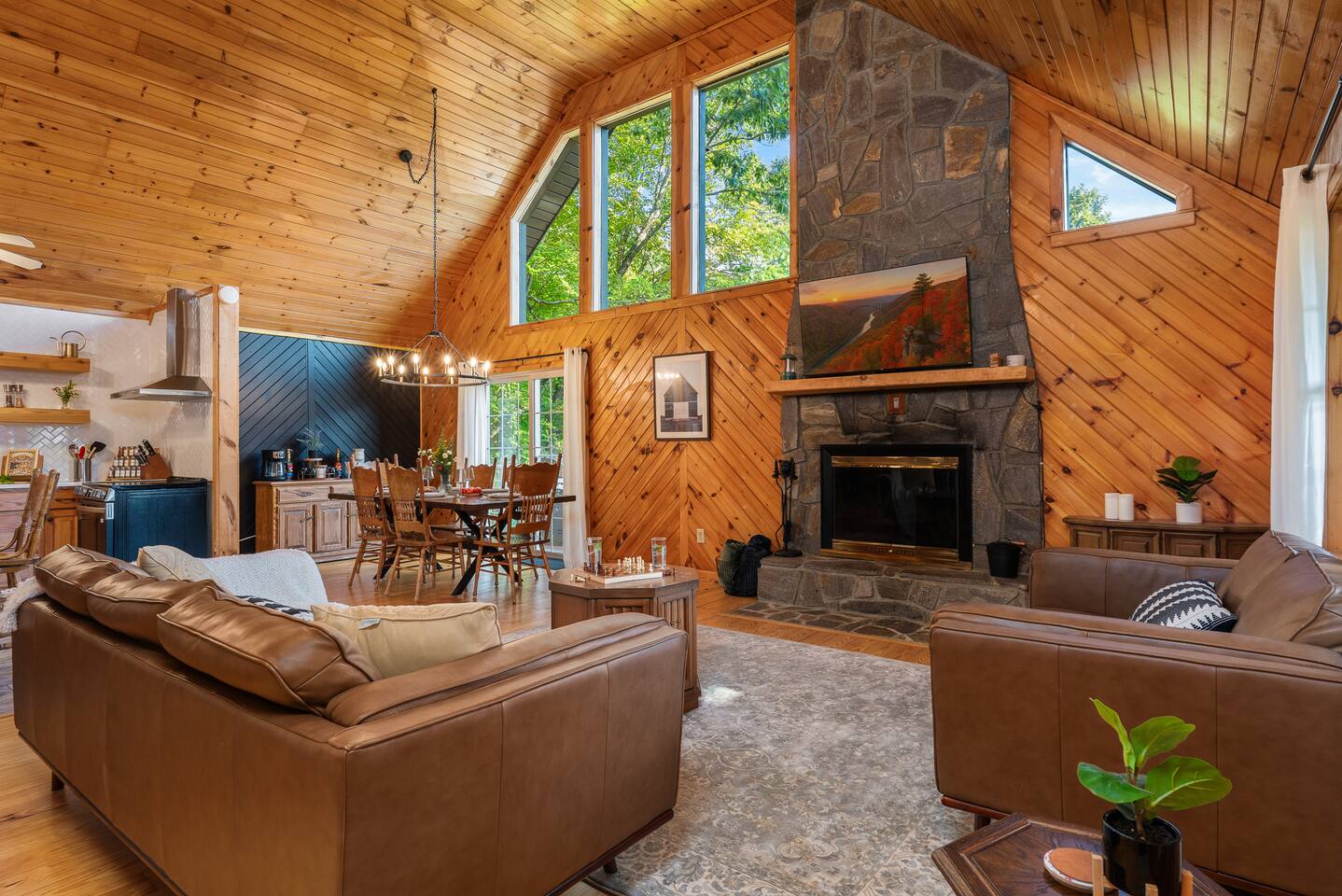 The Space: KEY FEATURES: ☀ Long Range Mountain and Valley Views ☀ Private Hot-tub open 24 hours, can accommodate 7 persons ☀ Private Fire Pit with swing set, lounge chairs & hammocks — perfect for stargazing ☀ Geodome with cozy ambiance for stargazing and relaxation ☀ Pet Friendly (Pet Fee and Dog size restrictions apply) ☀ Game Room (Arcade games, Pool Table, Foosball, Poker Table) ☀ Fun Wall Climbing Adventure for Kids Ages up to 12! ☀ Private Theater Room ☀ 4 bedrooms: 1 King Bed, 2 Queen Beds, 2 Twin Bunk Beds ☀ 3 bathrooms spread out over two levels ☀ Beautiful fully equipped kitchen with brand new appliances ☀ Cozy living room with stone fireplace ☀ Balcony with sweeping views ☀ High-speed Internet ☀ AC/Heat ☀ Washer and Dryer ☀ Filtered water throughout the home (Safe to consume) This 4-bed/3-bath Cabin has an open interior design with many spots to hangout with friends or family and to soak in nature. You can cozy up in front of the indoor Fireplace or outdoor Firepit, engage in competitive games in the Game room. OUTSIDE The yard has a stunning Fire Place area adorned with swing sets and string lights to relax and to make smores with friends and family and enjoy Smoky Mountains View. Dining for 8 at the table and a breakfast bar that seats 3. Living room has loads of natural light and 55 inch TV to enjoy with family. Porch filled with rockers and swing for relaxing and looking at the view. Master bedroom has king bed with closet, dresser and additional TV. The 2 bedrooms have queen beds with closet and dresser. 2 Twin bunk beds help comfortable stay for kids and large groups. This impressive cabin offers modern amenities such as a washer and dryer, high-speed WiFi, laptop-friendly workstation, full size kitchen and bathroom essentials. There is reliable high-speed internet throughout the entire property with flat-screen Roku TVs. From here, you’re just a short drive from local grocery stores, retail shops, and some of Maggie Valley's most popular attractions. Designed with traveling families in mind, this five-star adventure cabin is the best way to experience the Great Smoky Mountains in western NC. This is a pet-friendly home and your pets can now be included at the time of reservation via AirBnb! A one time $115 pet fee will be applied to the total of your stay. Please inquire with the owner for approval prior to booking your reservation. Fees must be paid in full prior to receiving the access codes for check-in. Dog(s) must be house and crate trained. Failure to get pet approval prior to your stay will result in a fine in addition to standard pet fee.