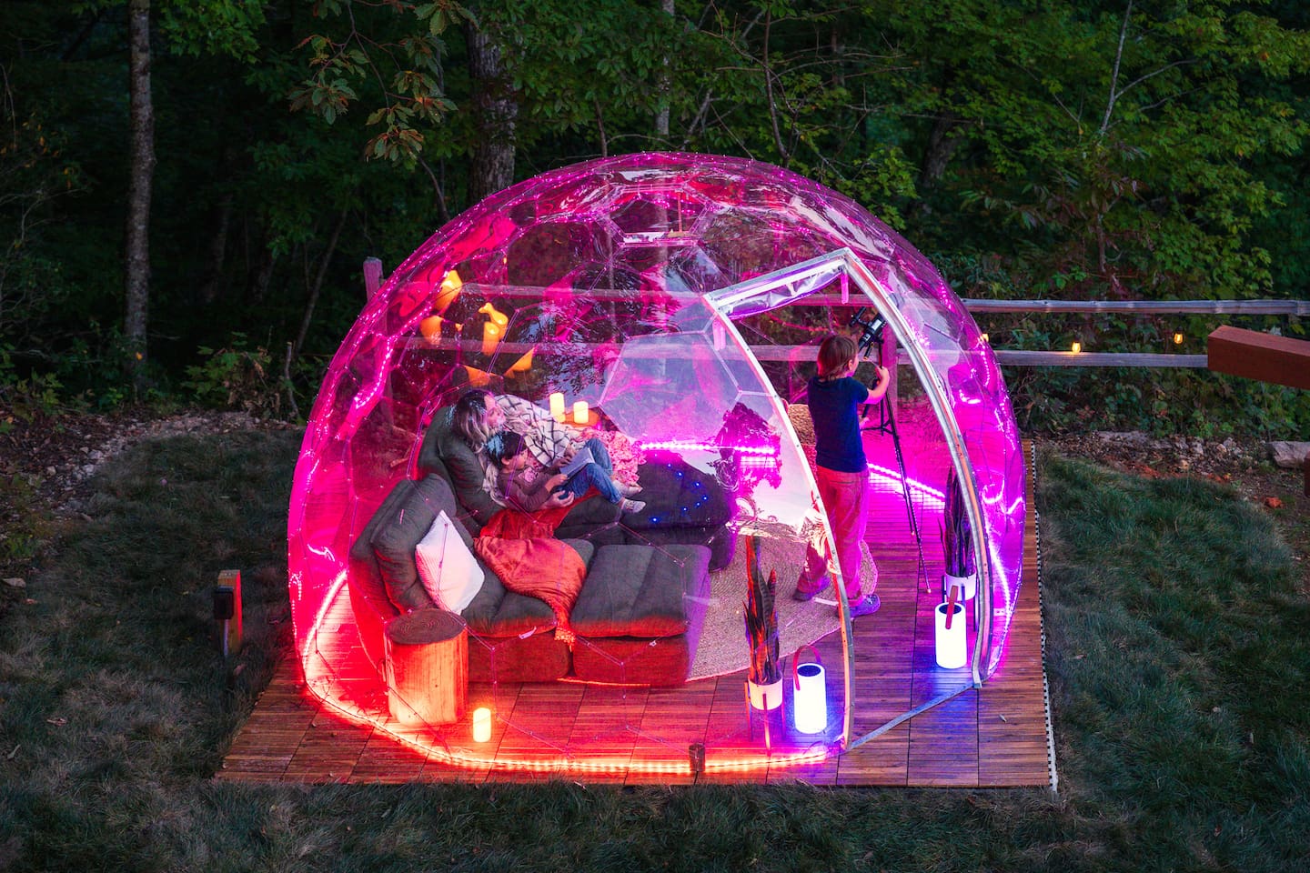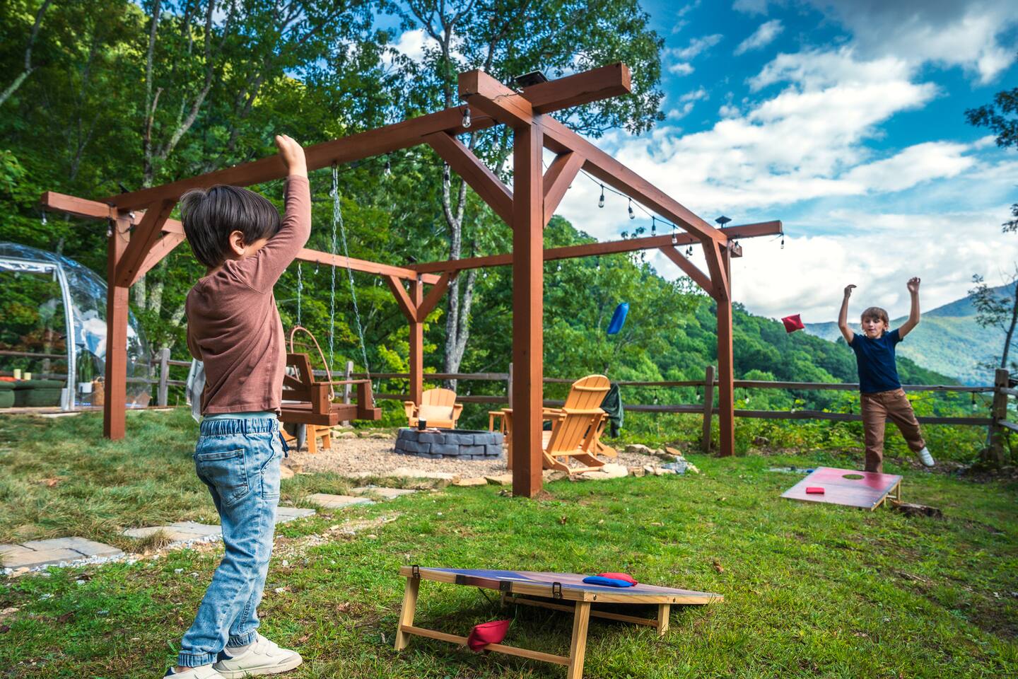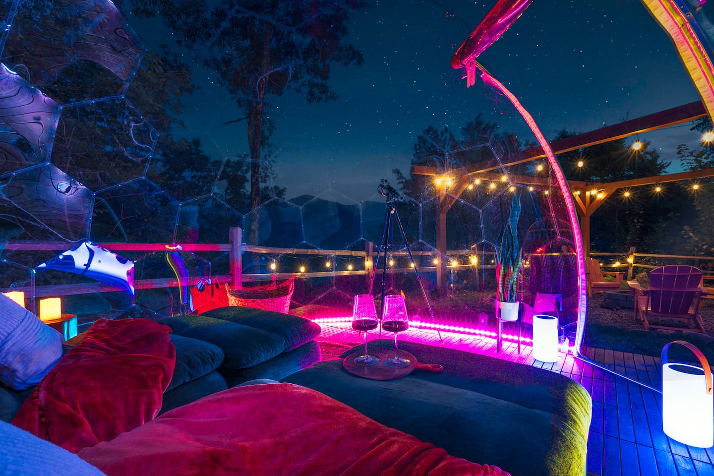 Escape to the mountains with breathtaking views, relax in the hot tub or by the firepit, stargaze in the geodome, and enjoy endless fun in the game and theater rooms.