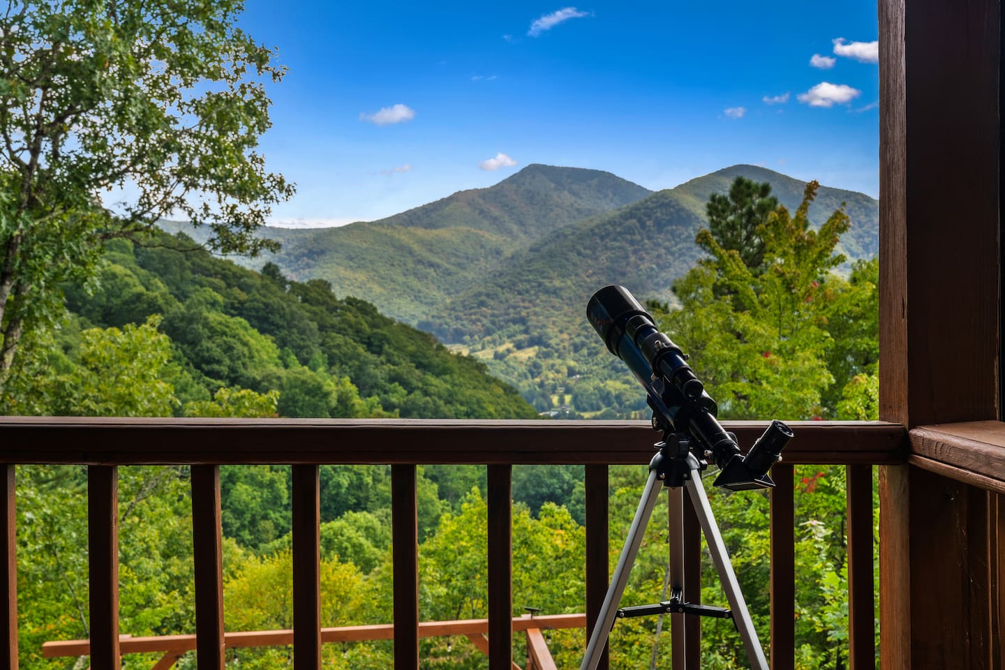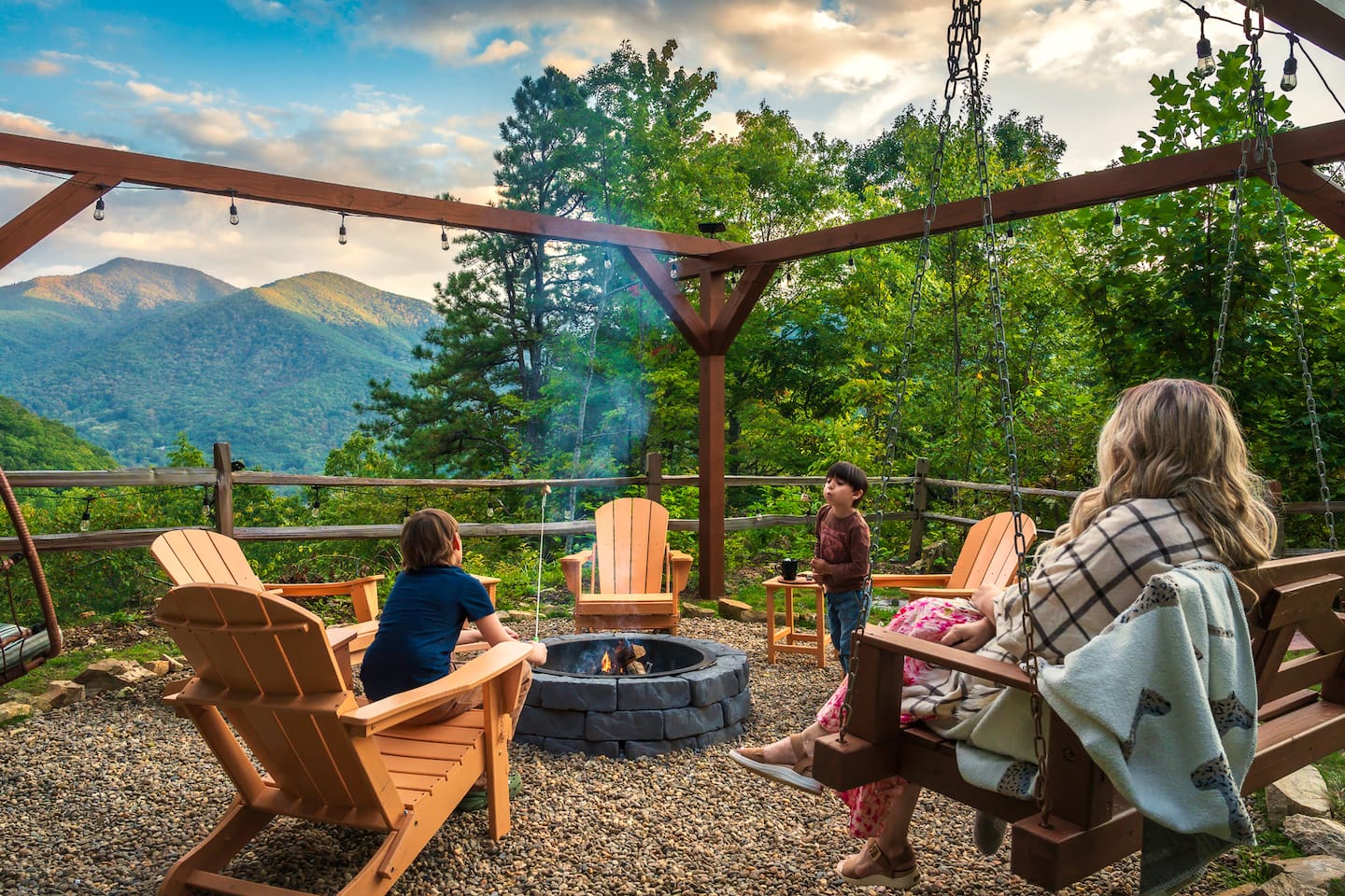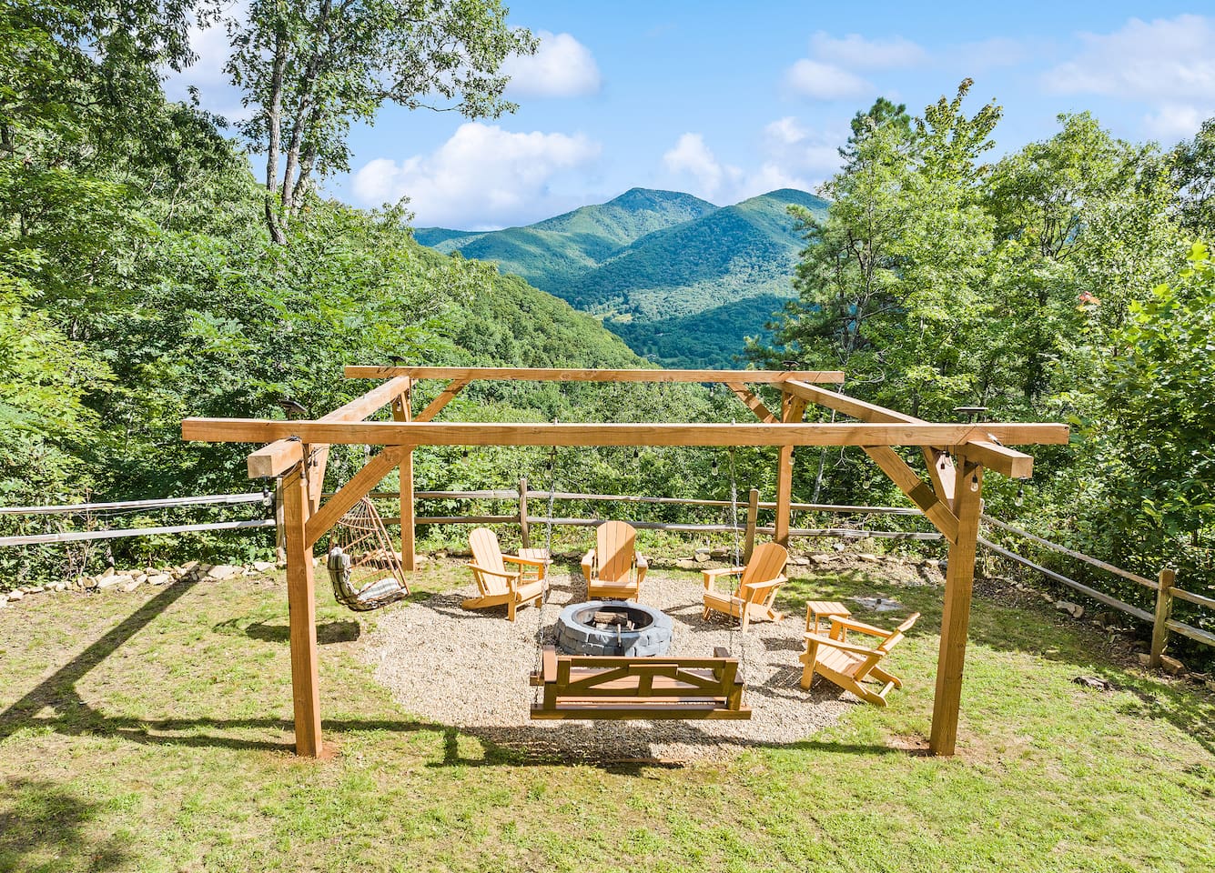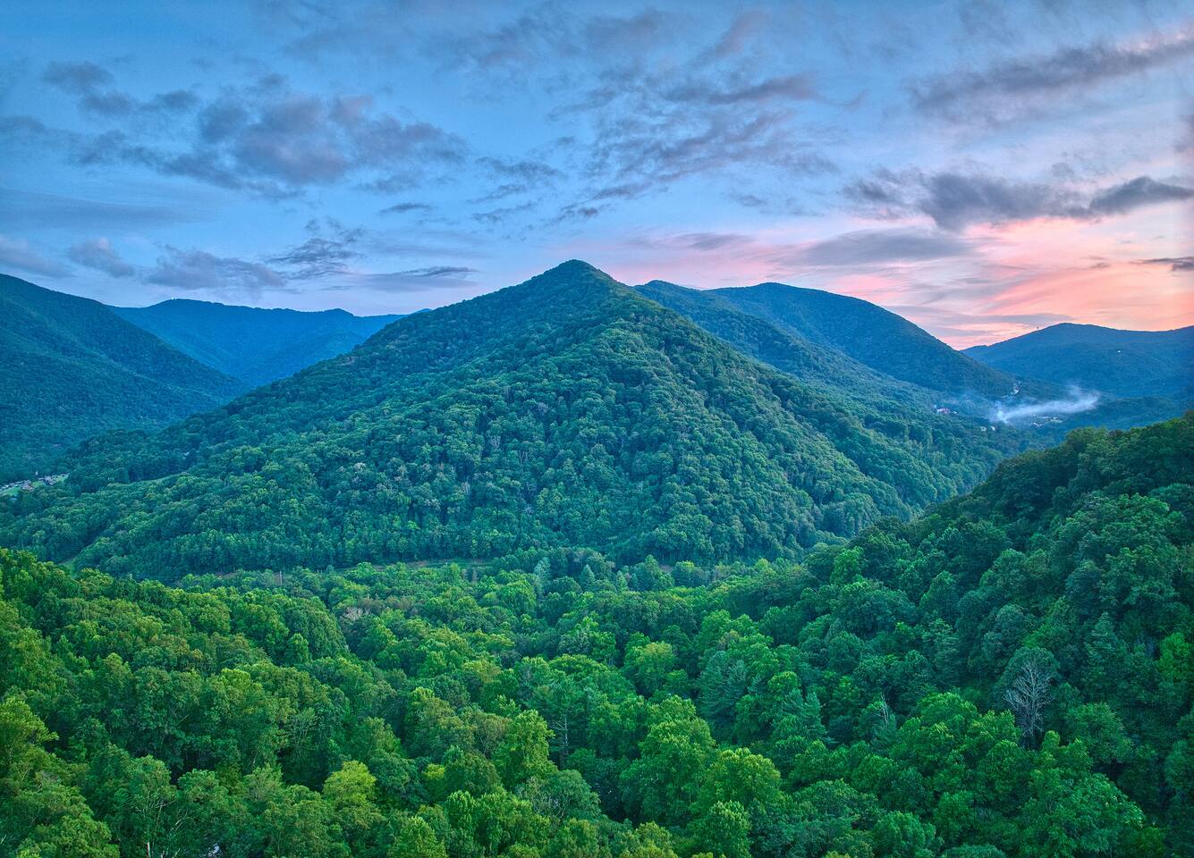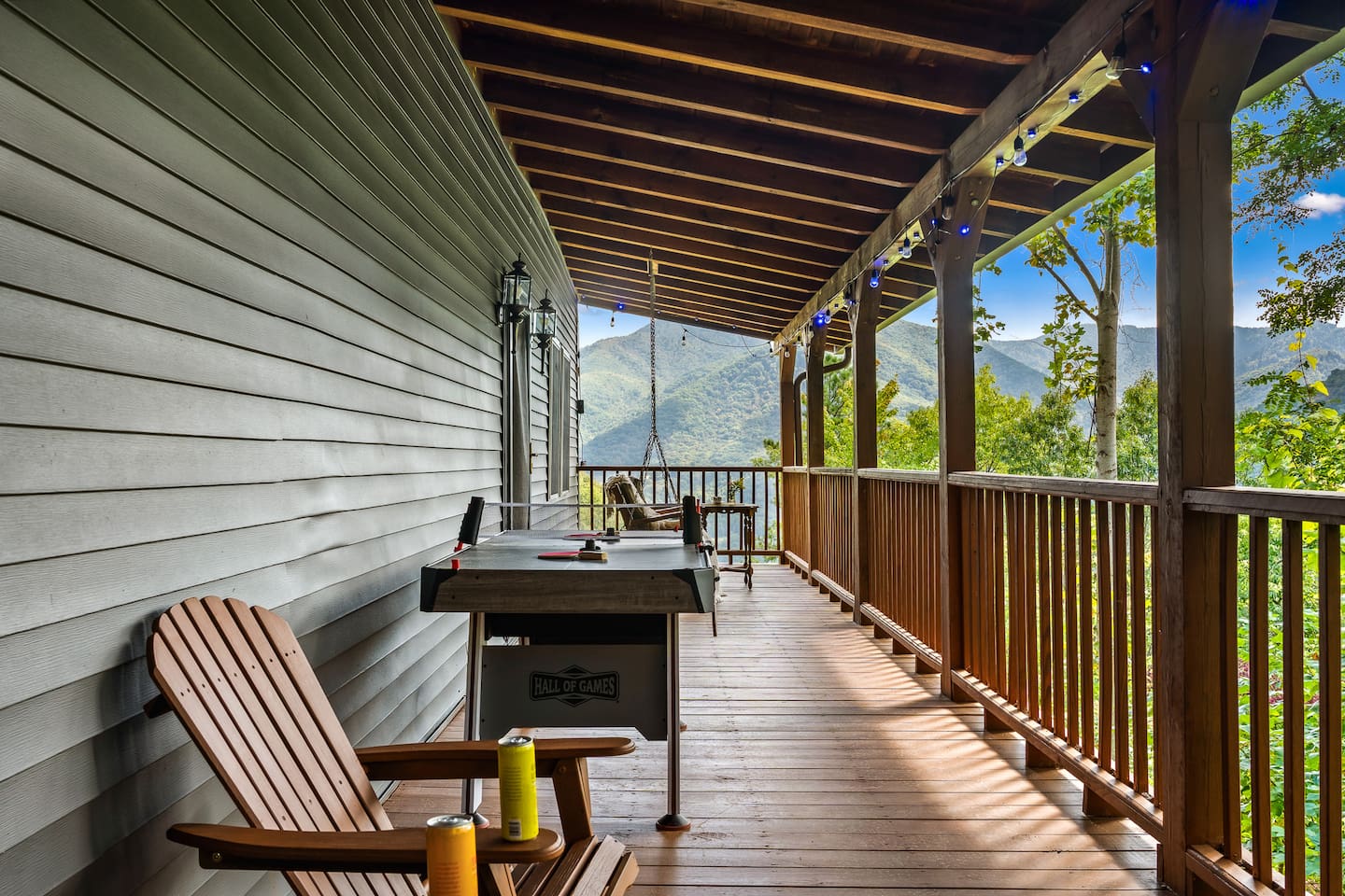The Infinite Haven is a pet friendly rustic mountain retreat with breathtaking long range mountain and valley views, a star gazing geodome, a beautiful hot-tub fireplace with swing set - perfect for relaxing and snapping your next insta worthy photos while star gazing! With a fully stocked kitchen, game room (pool table, poker table, arcade games), theater, huge private backyard, there’s something for entire group. -4 min to Maggie Valley Downtown -Mins away from hikes and waterfalls