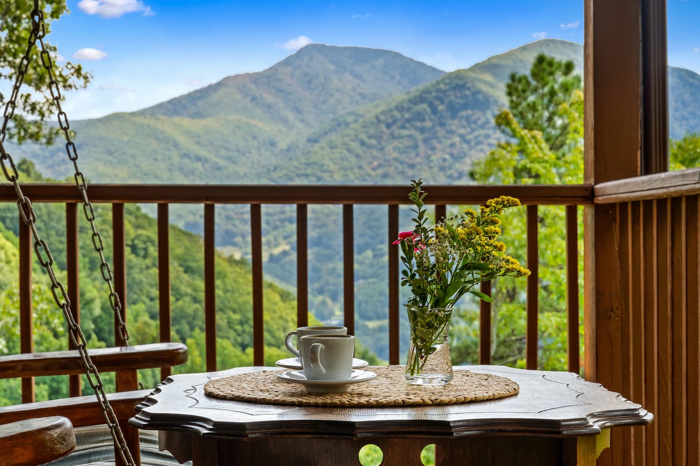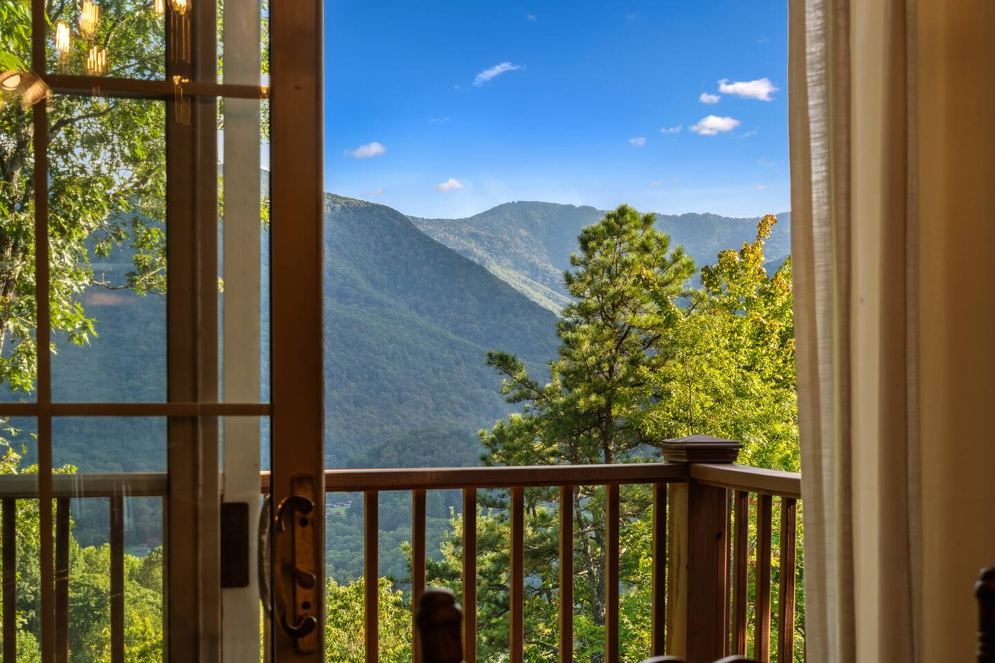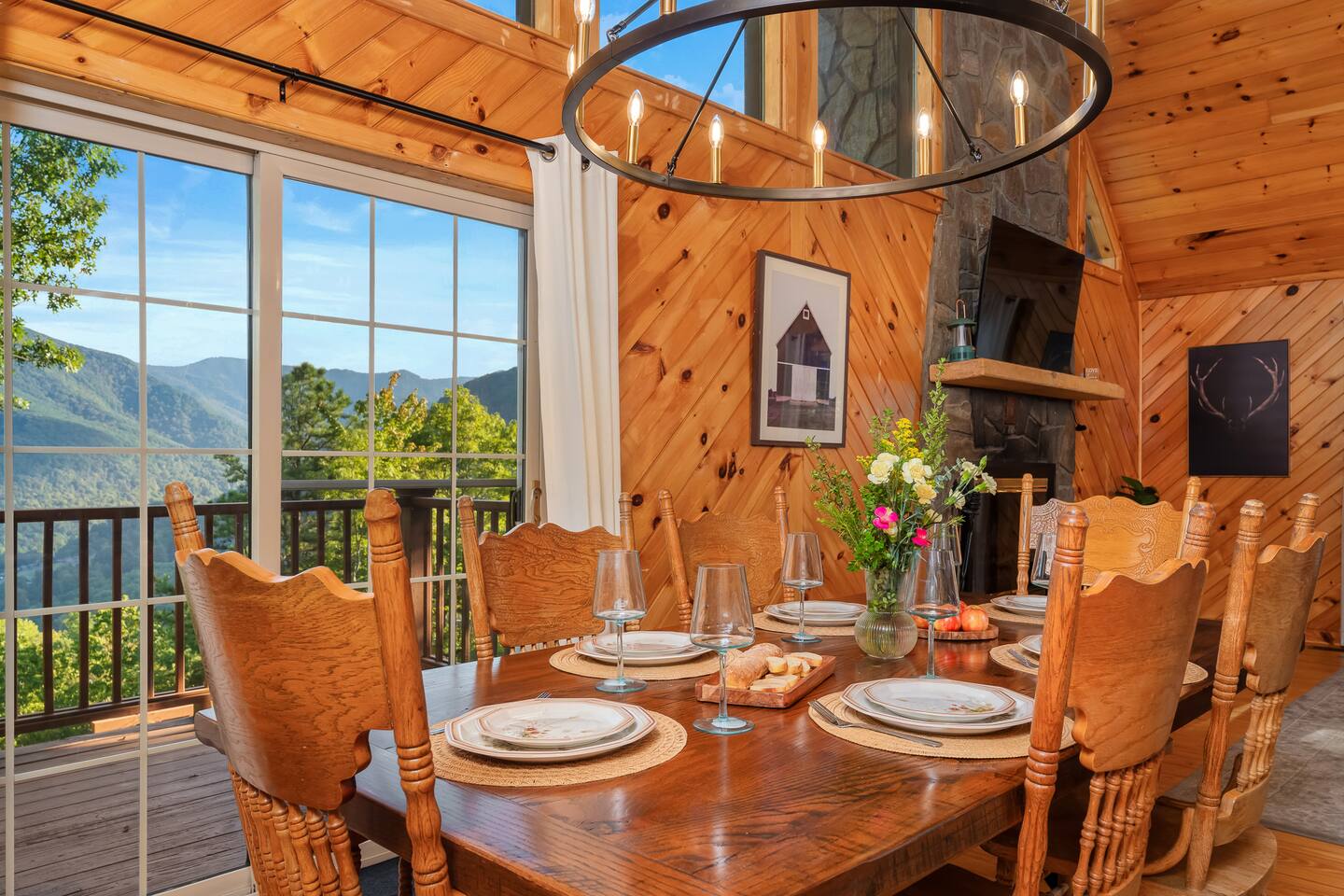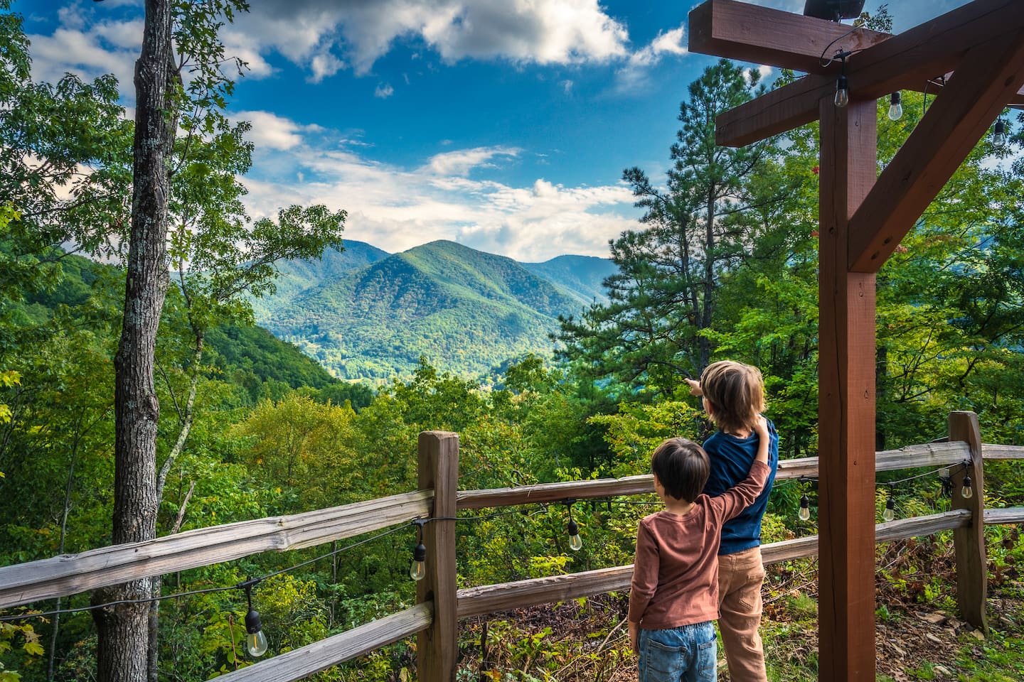 The Infinite Haven is a pet friendly rustic mountain retreat with breathtaking long range mountain and valley views, a star gazing geodome, a beautiful hot-tub fireplace with swing set - perfect for relaxing and snapping your next insta worthy photos while star gazing! With a fully stocked kitchen, game room (pool table, poker table, arcade games), theater, huge private backyard, there’s something for entire group. -4 min to Maggie Valley Downtown -Mins away from hikes and waterfalls