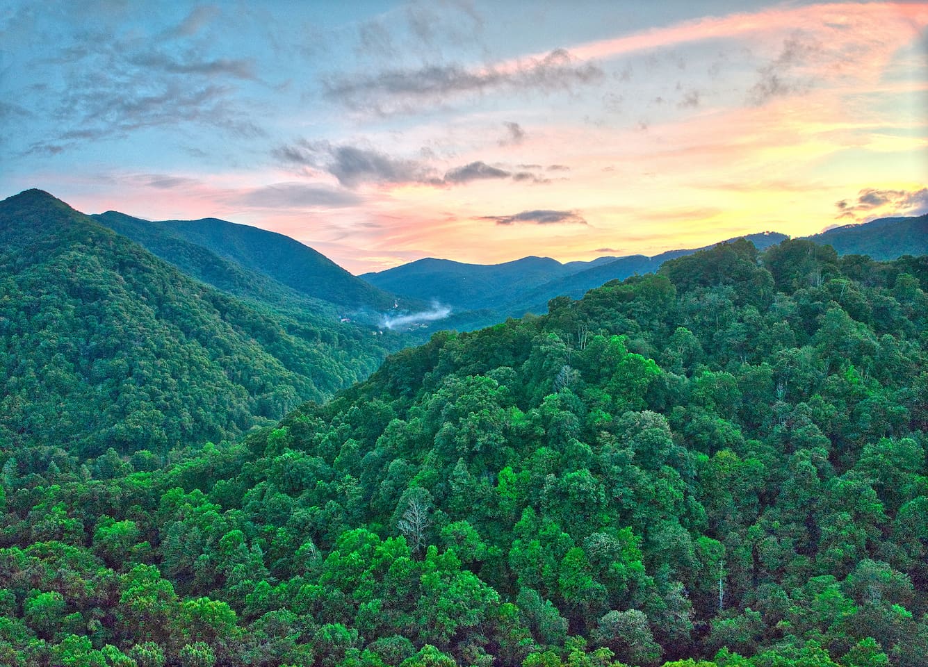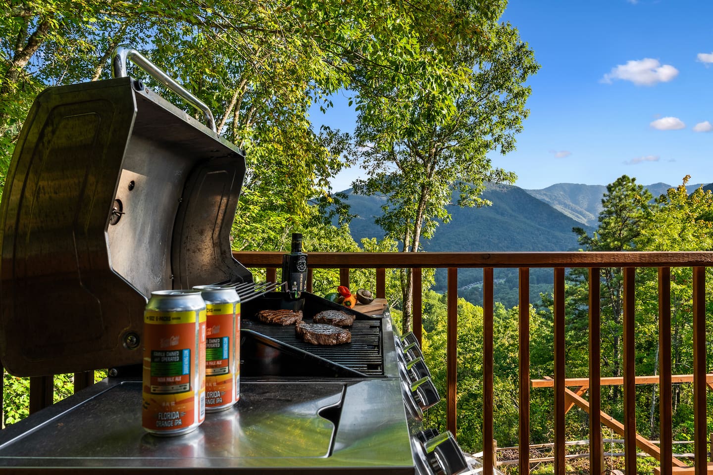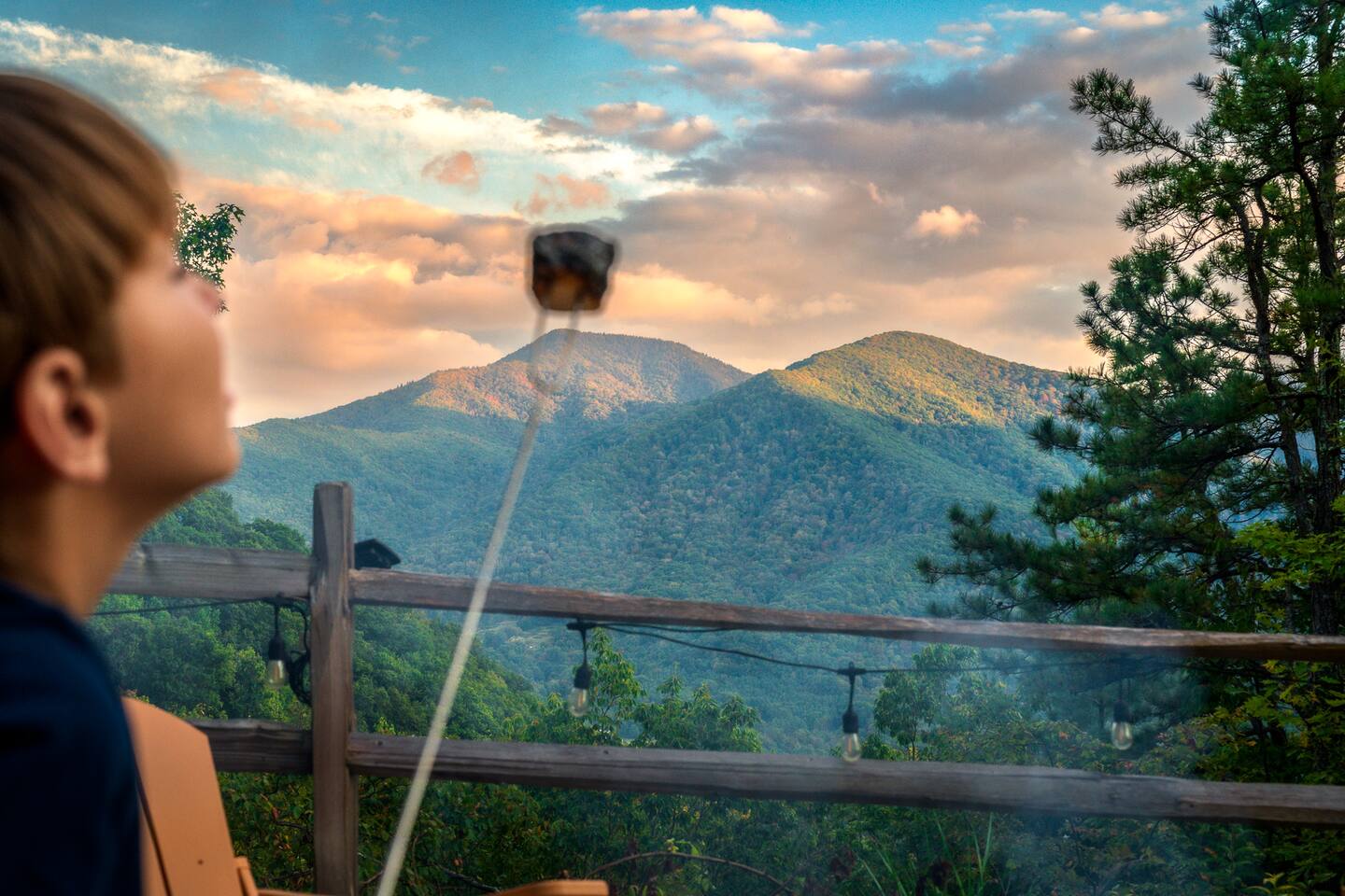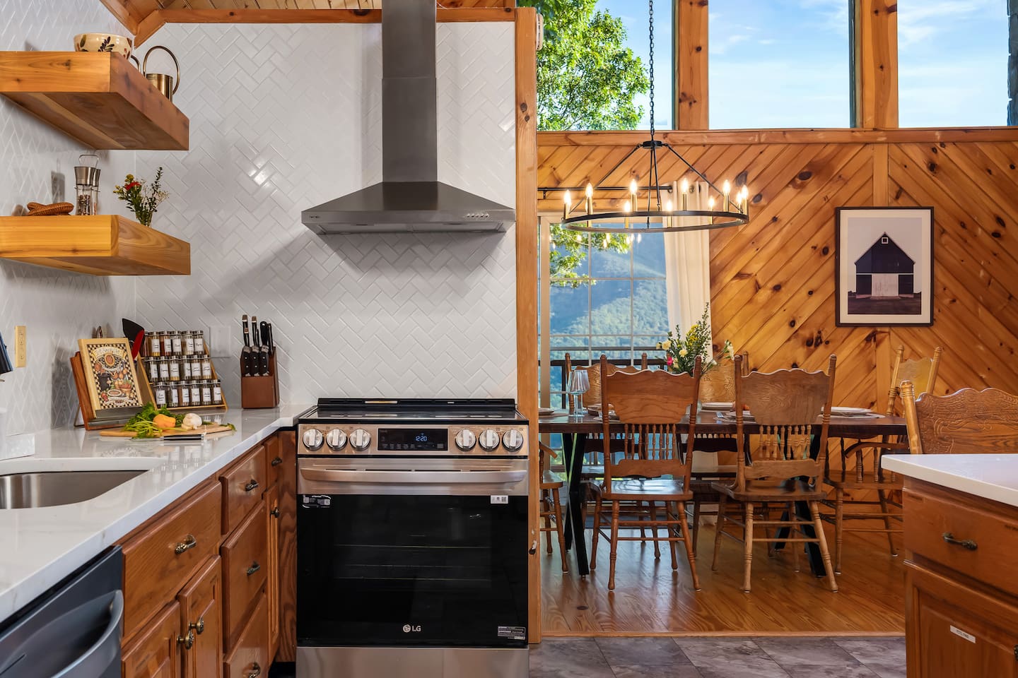 The Infinite Haven is a pet friendly rustic mountain retreat with breathtaking long range mountain and valley views, a star gazing geodome, a beautiful hot-tub fireplace with swing set - perfect for relaxing and snapping your next insta worthy photos while star gazing! With a fully stocked kitchen, game room (pool table, poker table, arcade games), theater, huge private backyard, there’s something for entire group. -4 min to Maggie Valley Downtown -Mins away from hikes and waterfalls