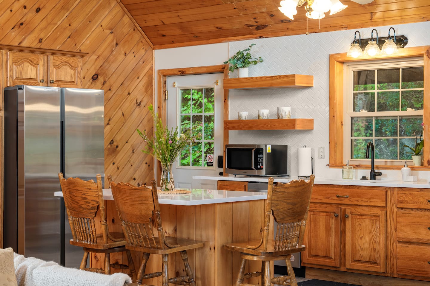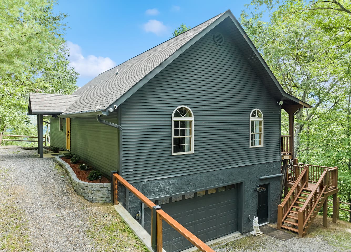 Guests will have private access to the entire property. Parking is available in front of the house with up to 4 cars. A keypad is located at the front door for a simple keyless entry. The entry code will be provided to you 72 hours before your arrival. The code is changed after every guest. Please note there is a Ring security camera located at the front of the house facing the parking and entrance for your security and a Ring Door Bell camera at the entrance. There are no cameras inside the property. ☆Please Note: The last half mile to the house is a winding gravel road. 4WD is not required during the milder months, but is recommended in the winter.